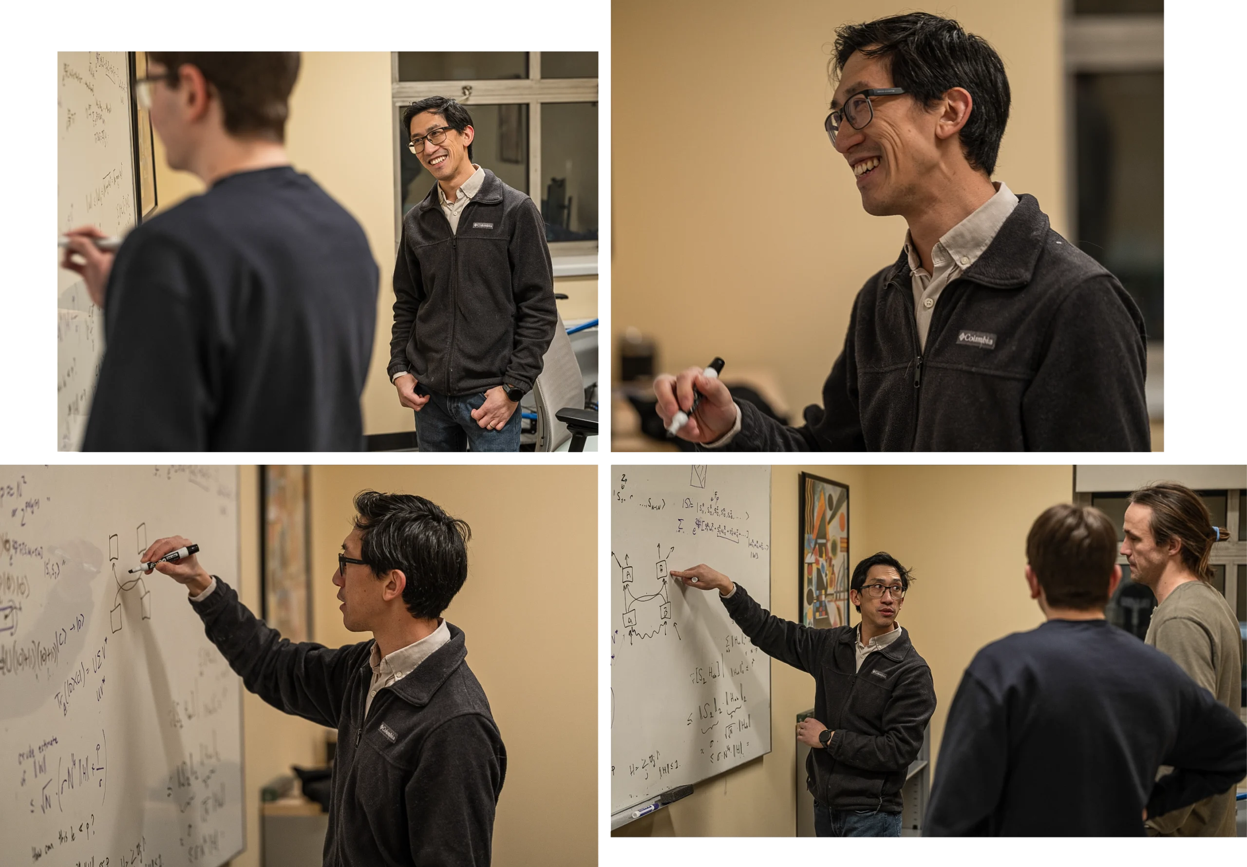 Yuen discusses a problem in quantum complexity theory with two graduate students.