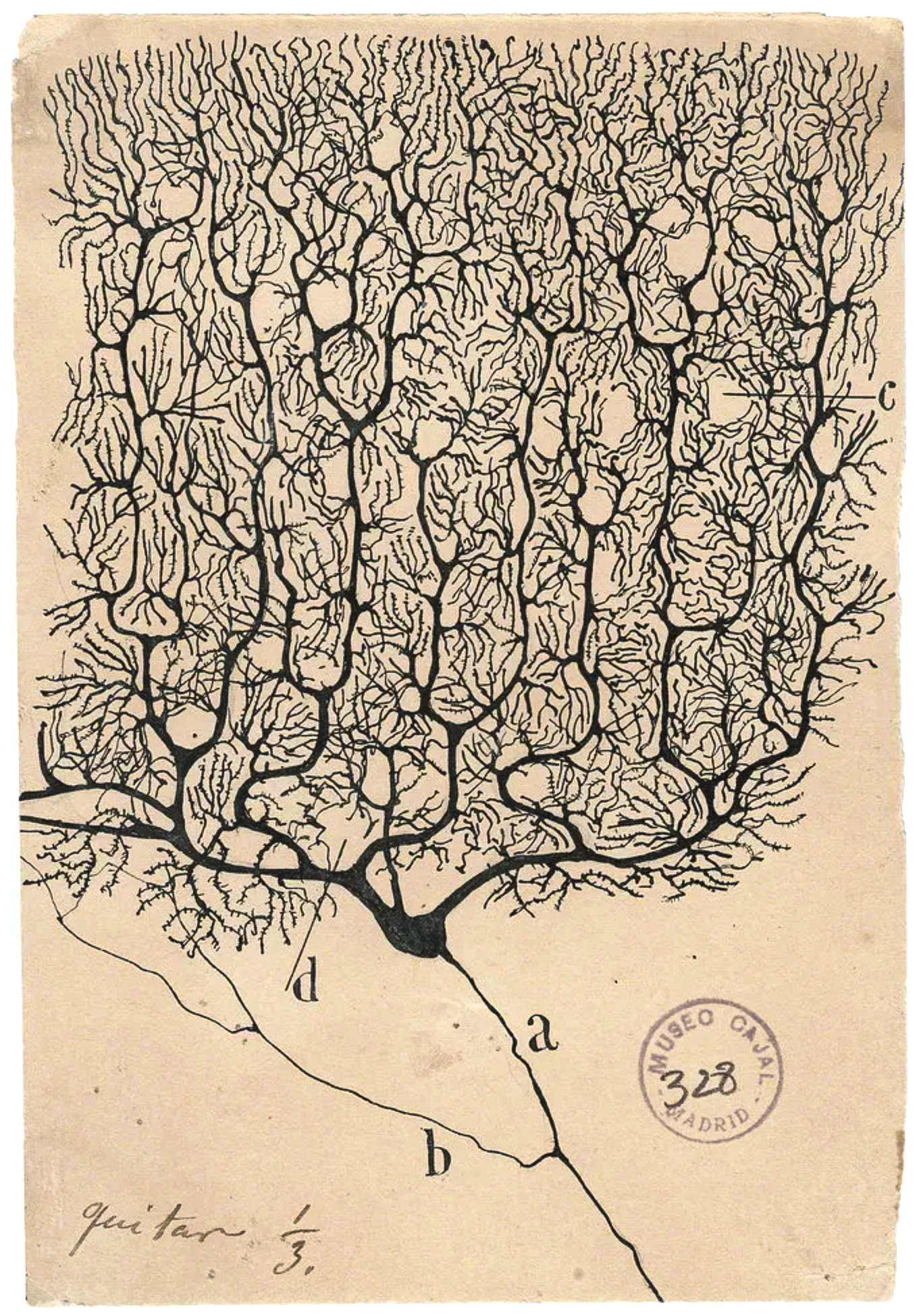Santiago Ramón y Cajal’s drawings of neurons, such as this Purkinje cell with branching dendrites, led to his theory that the nervous system contains many interacting cells.