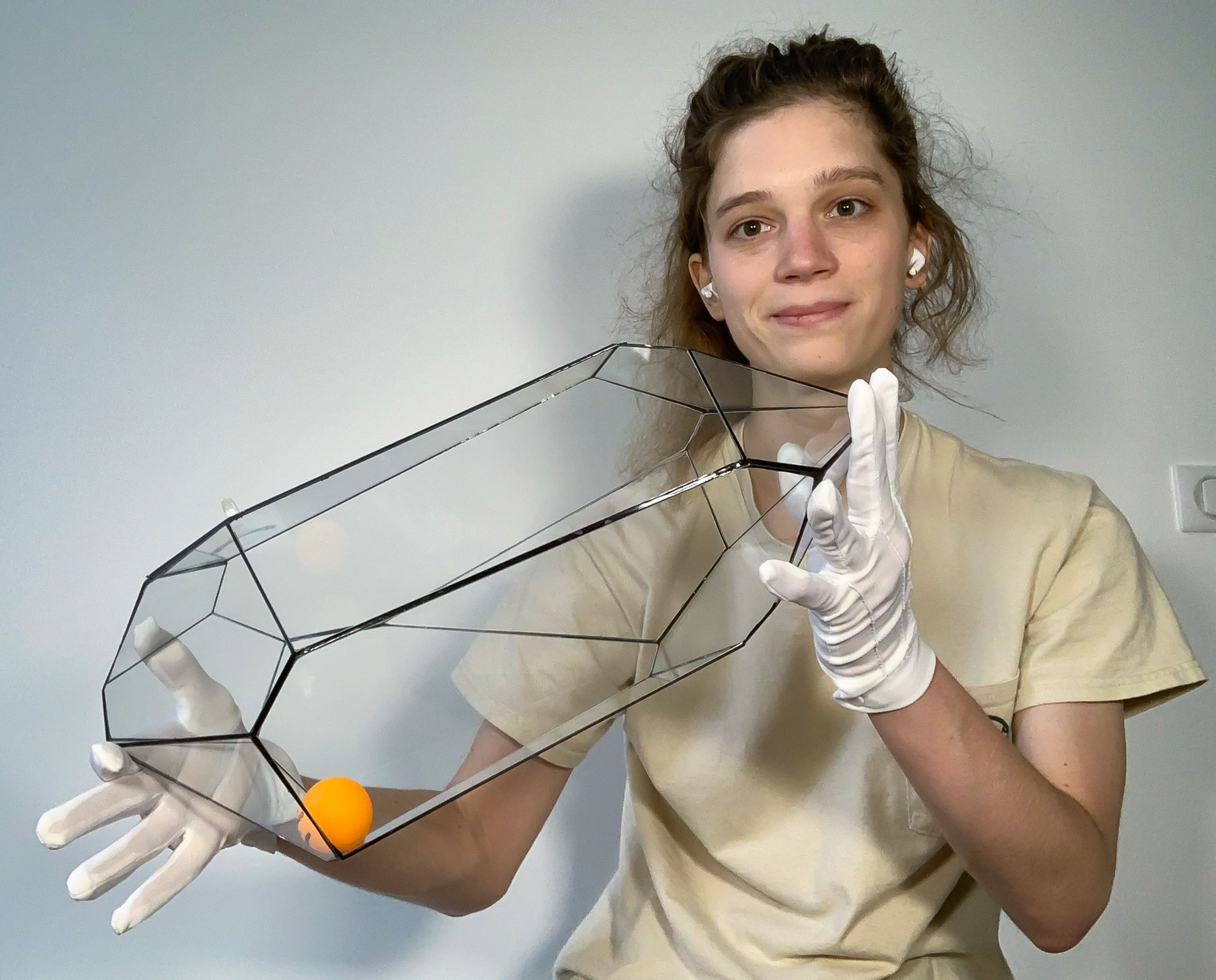 Sophie Huiberts holds a geometric model of an optimization problem.