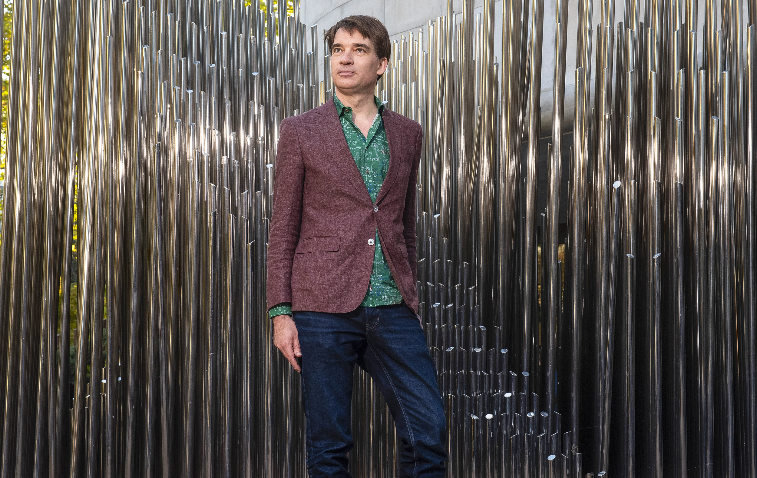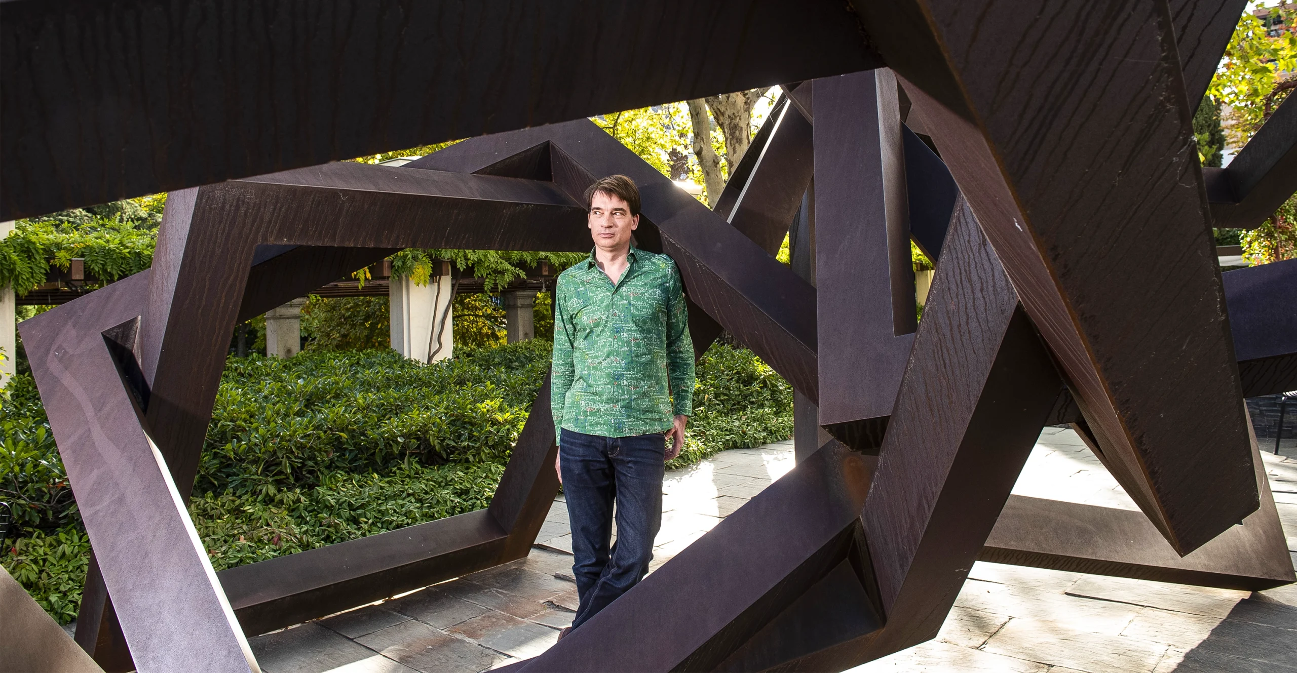 Heule in front of Órgano, a sculpture by Eusebio Sempere.