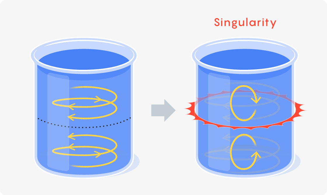 Because of this, the singularity was stable. But a singularity need not be stable. A blowup might occur only when the fluid is set up in the most delicate of ways. In such a case, any adjustment to that initial arrangement, no matter how small, would prevent the fluid from blowing up.
